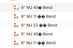 For example, I have fractions and degree symbols for elbow fittings and they just show up as question marks as seen below.