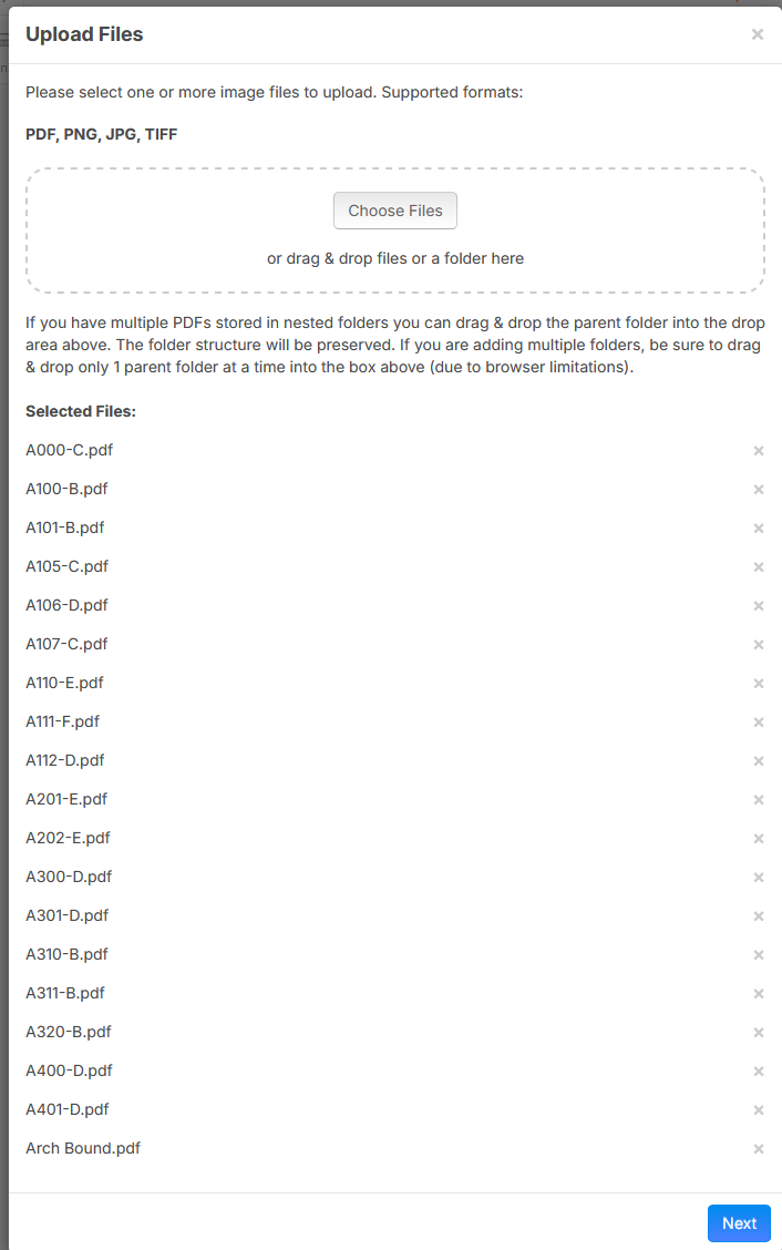 Had to drag PDF's into the window. Couldn't do the folder or parent folders.