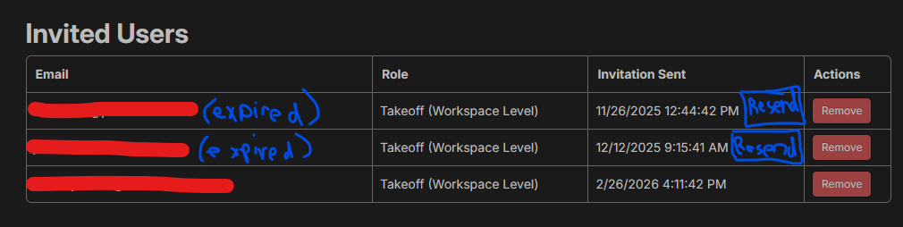 Ability to see Expired invitiations and quick button to 'resend' a new invitiation