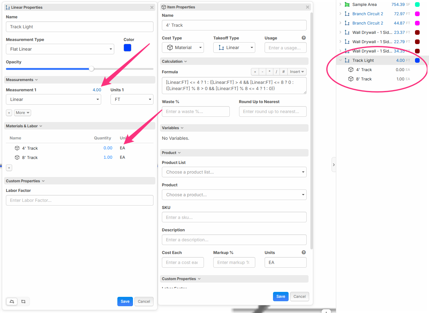 I was trying to create a formula for 4' and 8' track lights. The takeoff quantity was hit and miss for working with my formula because I was ending up with some 4.00' measurements that were actually 4.0001' or something and so my formula wasn't working right.
