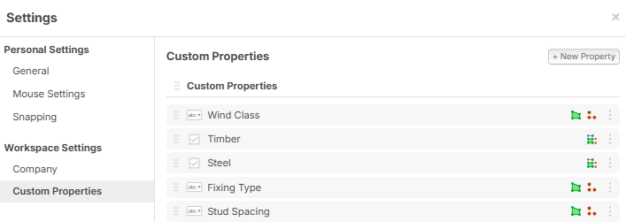 2. Suggestion: Since creating a Property is already available in the Settings, can we extend this by creating a Job Property? Inside the Job Property, we could define Parameters (such as Wind Class, Stud Spacing, Fixing Type, etc.) that would act as shared variable references across the Job scope. This would streamline template setup, reduce repetitive input, and significantly minimize errors.