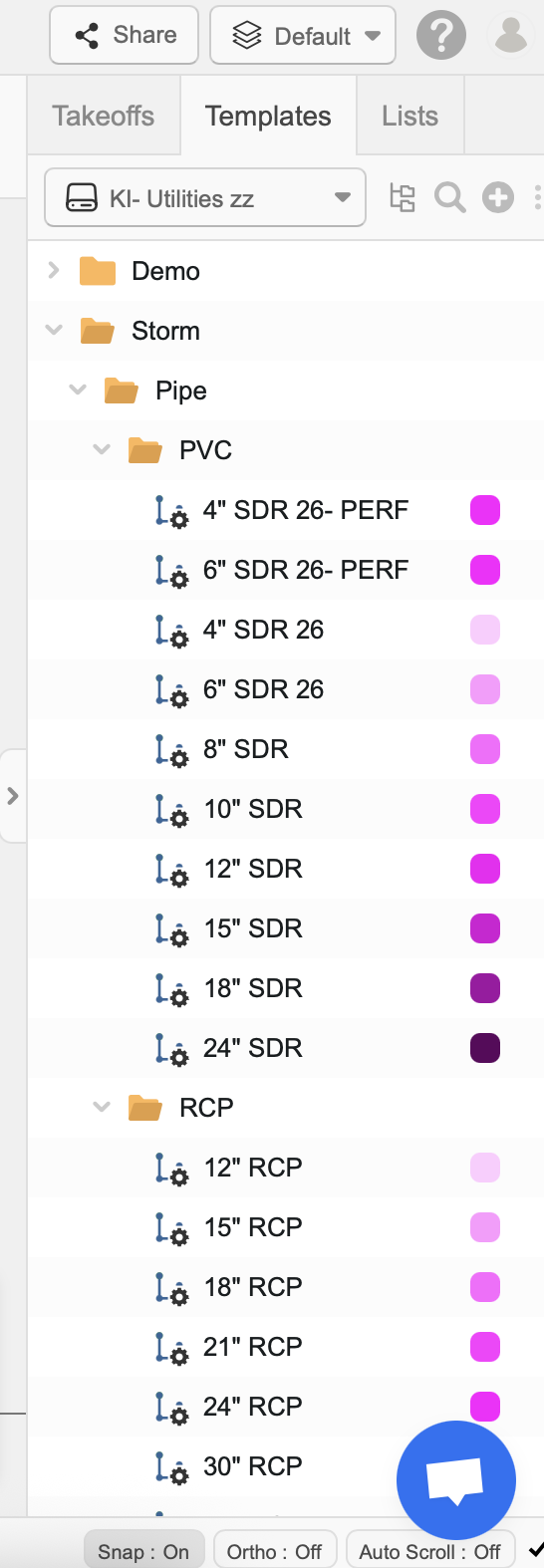 For example, as an Mechanical Estimator I have a template for Plumbing Pipe, under that template I have folders for different pipe types (copper type L, cast iron hubless, Sch. 40 PVC, etc) and then under that a takeoff (not item) for various sizes that come up commonly on jobs I bid. It would be great to assign a layer to each of those takeoff, and make it so that whenever it is used on a project it automatically creates that layer.