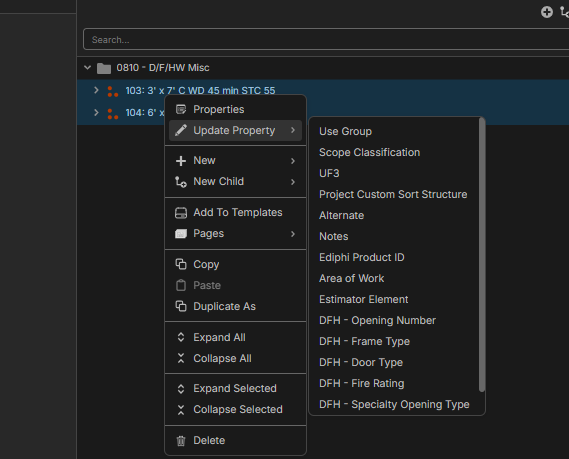 We are diving into our selfwork door frame hardware workflow and wondering if we can bulk update the name to be text with tags?
