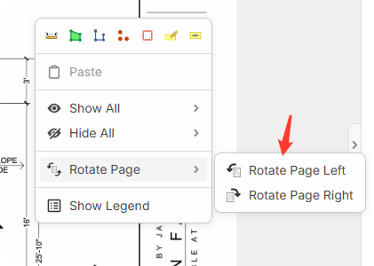 To add onto this page rotation request, it would be nice to be able to rotate them in 1, 15, 45, and 90 degree increments. We overlay landscape and topo plans on house plans regularly and a lot of the time, they will be rotated differently. We need the ability to turn one page to make them align.