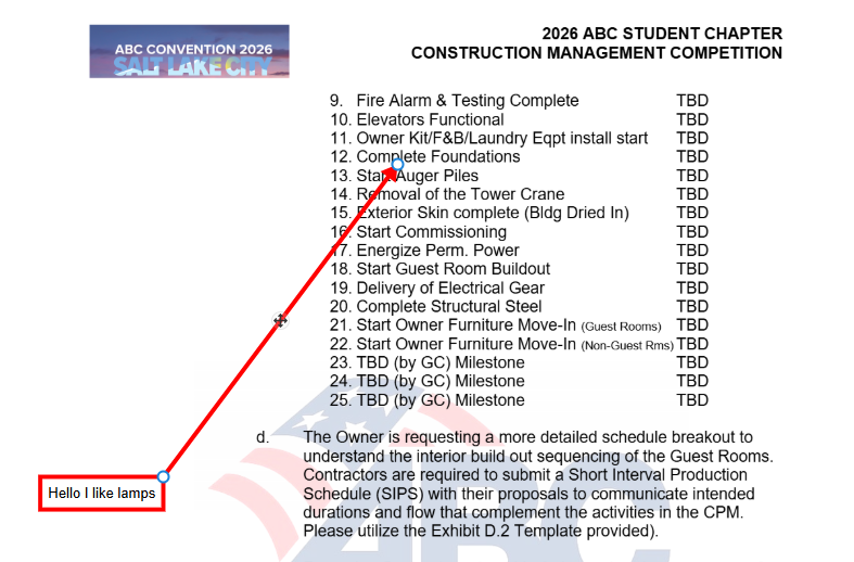 Loving the new markup default feature. We might be using this tool for the judges for the ABC construction management competition, and one thing I know Bluebeam users will need is the ability to anchor the arrow point, so when you drag it around the arrow point sticks.