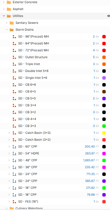 For example, I have a Utility folder that houses a Sanitary Sewer, Storm Drain, Culinary Water, Hydrant Waterlines, etc. If I want to see all the guts of the items in my Storm Drains folder, I have to go and manually expand each folder/item or right-click and select expand all. Expand all, expands ALL of my folders/takeoff items and causes more work than is necessary. Likewise, I can collapse all, but then I have to go and expand out the folders/items that I want.