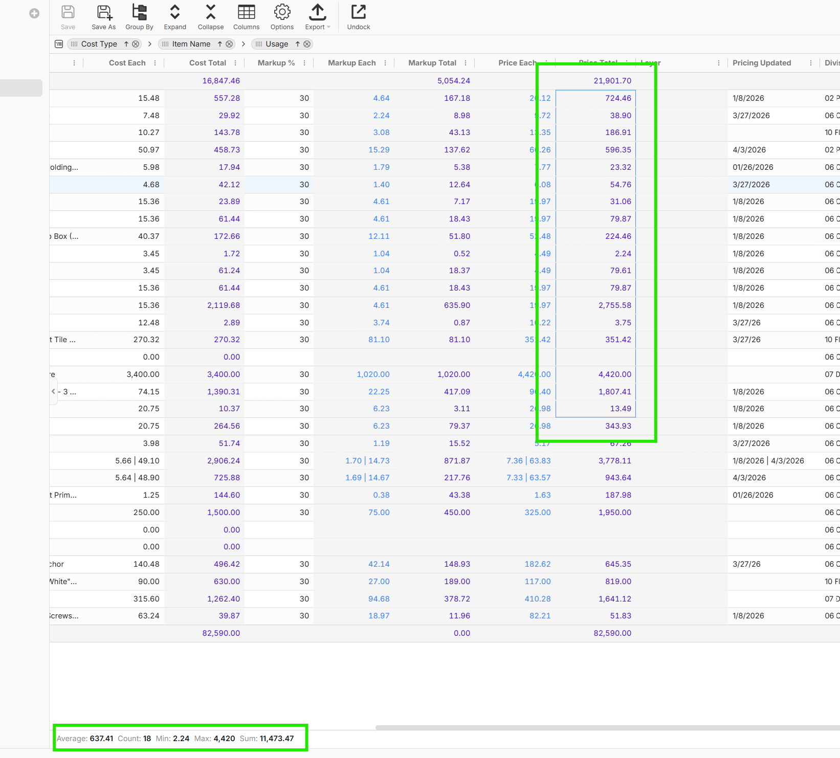 Is there a way to make the column below total at the top of the folder. This is a custom property we have built since we already know our units by SF and input the values in those.