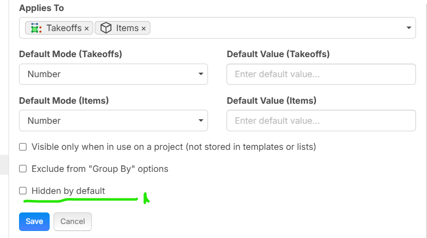 Right now when I create a new folder, takeoff, or item all of the custom properties show up if they are being applied to that item. I'm creating a template / database for users, They will see items there that dont particuarly apply to that takeoff or item and will say what I am suppose to select here. On my templates or pre-defined items it will only show the properties that apply to that particular item