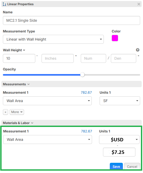 Would it be possible to add the option having a section here to enter a cost per sq ft / linear foot that automatically creates a labor cost formula for that takeoff - instead of having to manually enter/make a formula.