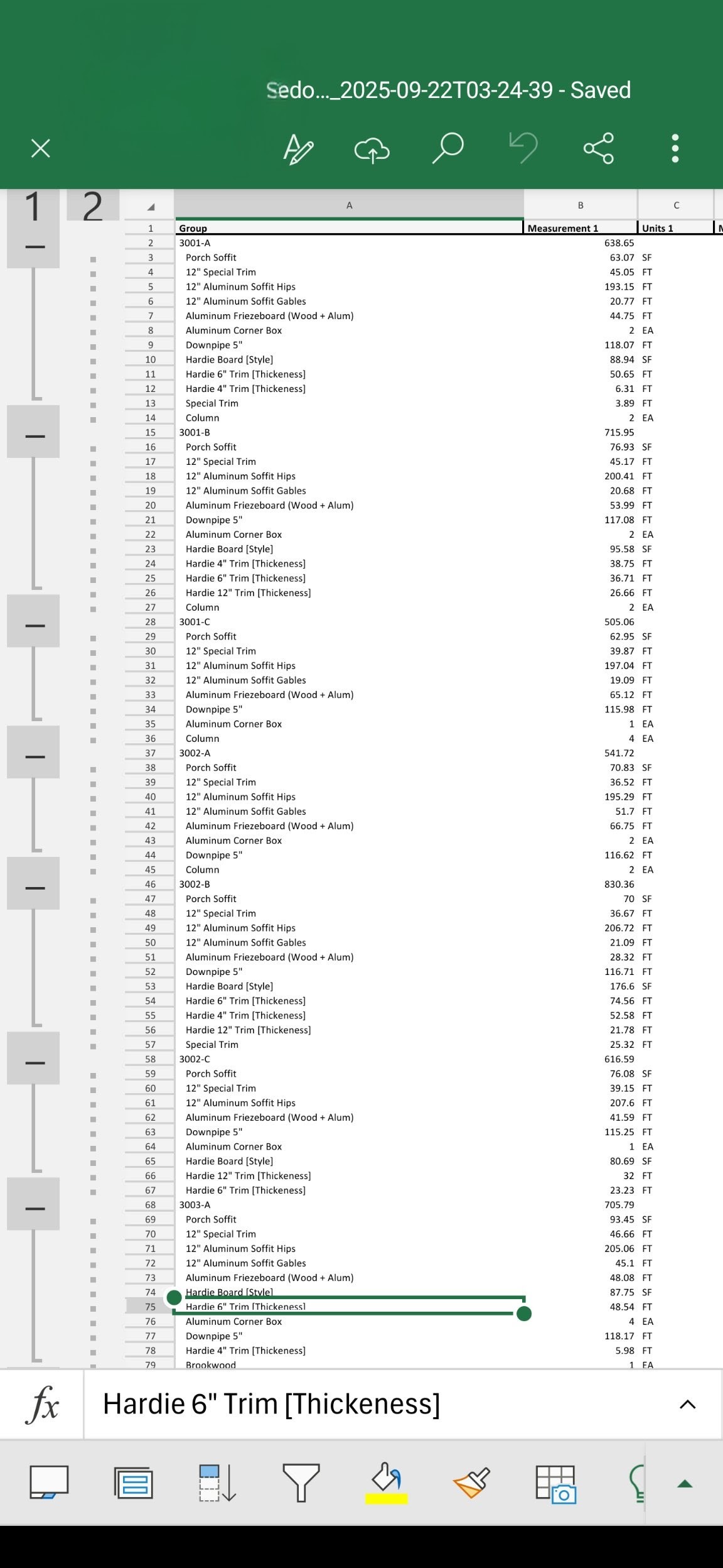 We would start a new folder in the right hand margin for every new model. When we opened the estimation tab, it would show only folders, open the folder and all of our quantities would show.