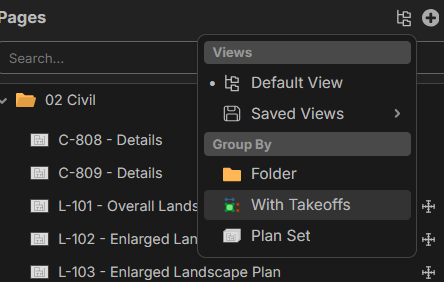 And while we’re at it: Add a star toggle button next to the magnifying glass—click it to show only pages with takeoff. Click again, see everything. Simple, clean, and game-ready.