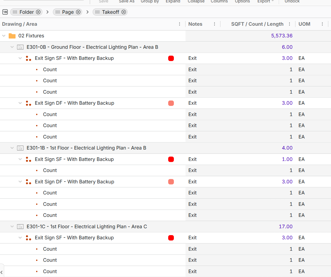 What I am looking to do is to be able to generate a report of takeoff for only visible drawings, or the other option is to have the option to be able to have the drawing folders as a filter option in the report.