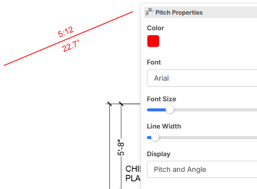 Hi Benjamin! Thanks for posting your feedback here. Do you want to click 2 points and have a line stay on the plan that indicates the pitch (similar to a dimension line), or do you just want to click 2 points and see a popup with the pitch and goes away when you hit OK?