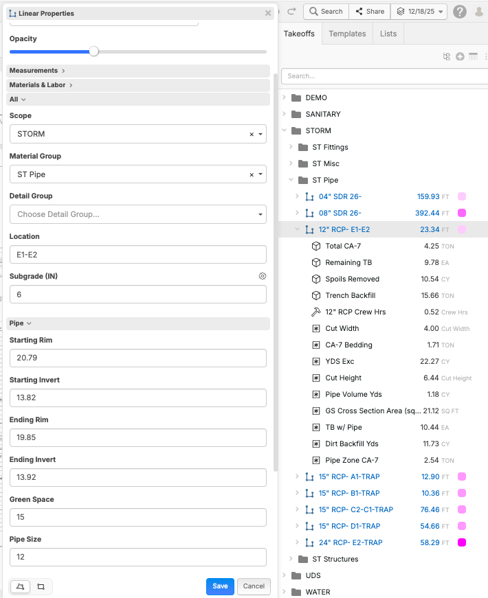 Is there a way that somebody knows how to do the trenching with linear or segment that each segment could have a start and stop rim and FL so we don't have to do a new takeoff for every lentgh of pipe and still have it calculate the trench volume if i could collaborate and share ideas to see if we could come up with a work around.