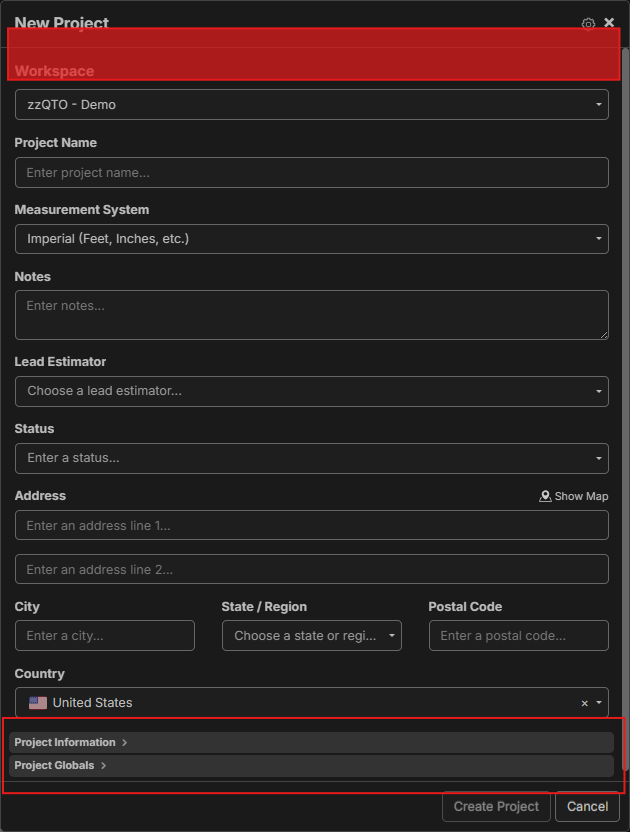 Also, as a feature request, the ability to save default project types that have the custom fields shown/hidden and/or properties pre-populated with data