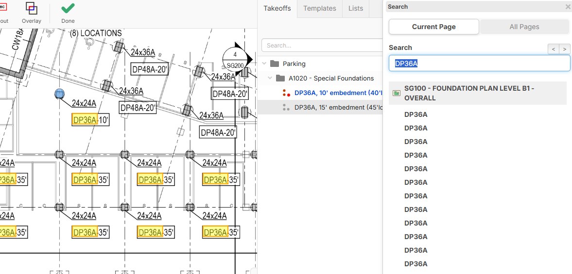 However, I'm wondering if there would be a way to be able to utilize normal functions (like creating or inserting takeoffs etc.,) with the search items "found" remaining hi-lited at the same time...? Search will find all the items you're looking for, which again is so great, but you can't do what you want to do on any given page if the search window/results are open/visible. You have to close the search window and start over....There is a work around: Simply put it on two monitors with 2 seperate/open pages - One with the search results open & the other with them off....but, it'd be so cool to have the ability to do both on a single page. Is that possible (hope I make sense)