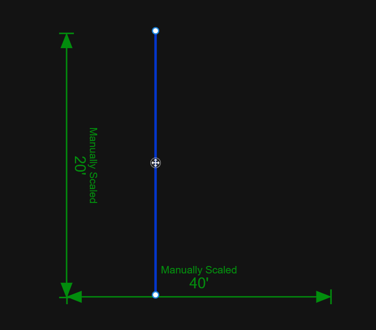 You can set them separately. That blue line is 20' long. If I rotate it 90 degrees, it then says it's 40' long.