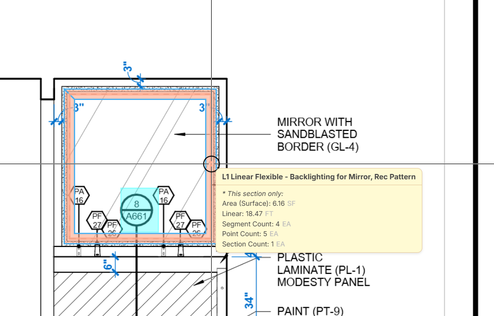 When taking off a Linear pattern can there be an option to show the segement lengths? And also have this as an additional mesurement item in the takeoff options?
