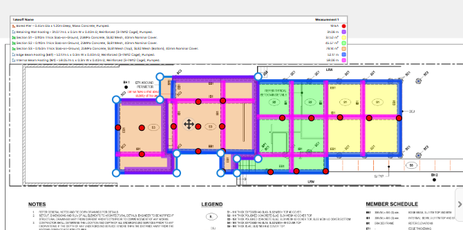 In drawings like the one attached, slabs are often divided into multiple sections (e.g. S1, S2, S3, S4, S5), each with different thicknesses and reinforcement. Currently, this requires us to perform separate area takeoffs for each section.