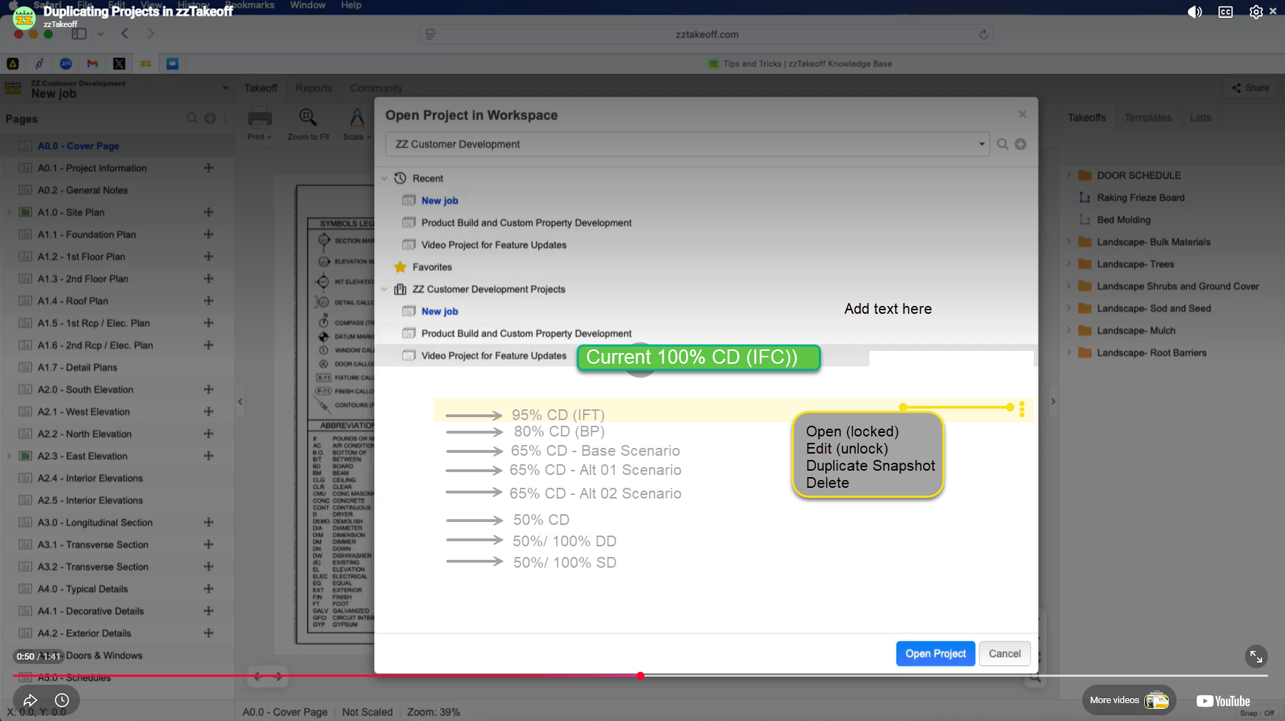 Ideally you could go into each of the snap shots, view the takeoff, reports, export with the option to unlock to edit, duplicate if you needed to keep a version but play around with a scenario for that past version, or delete.