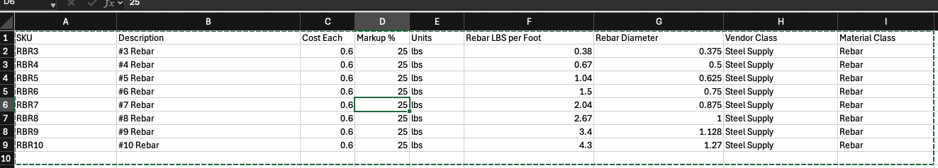 I am not sure if you know it, but you can also reduce the math by using a rebar product list. This way the rebar weight and diameter can be selected when you choose the size.
