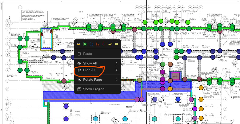 Ahh! I see. Right click within my plan page to find "Hide All"... not within any of the folder structures.