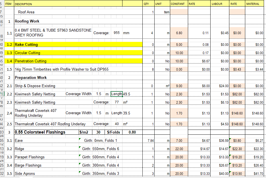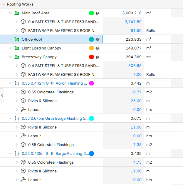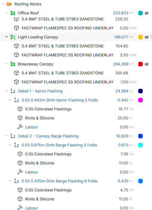 I am currently working with the following take-off using parents to build up multiple Roof flashings in one location.