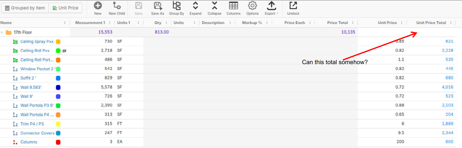Is there a way to make the column below total at the top of the folder. This is a custom property we have built since we already know our units by SF and input the values in those.