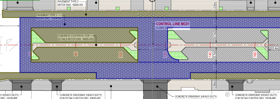 So in this case I would only measure Kerb (linear), then parking (brown area minus kerb perimeter), then roadway (blue minus brown and kerb).