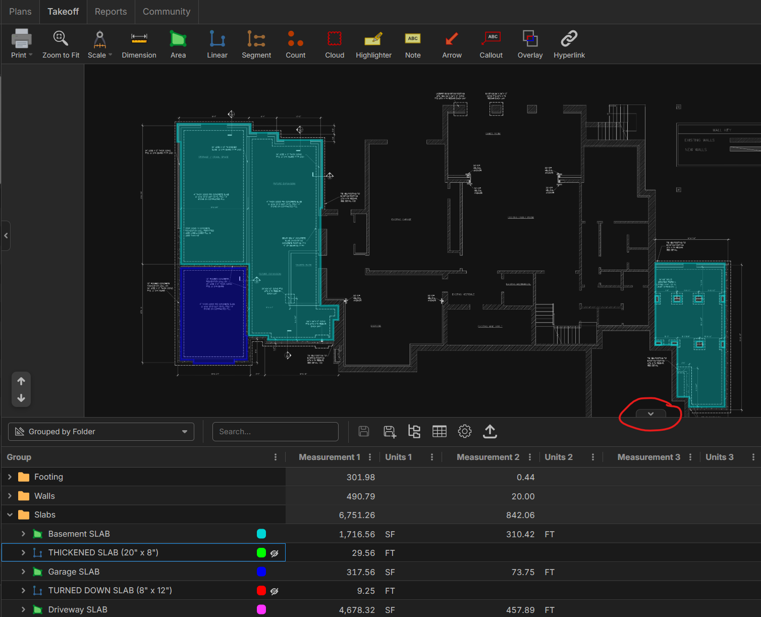 I'm not 100% sure about how to adjust the takeoff in reports but you can click this button and pull your reports up on the bottom of the screen while still showing your plan with takeoff.