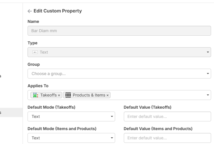 I don’t believe there’s another way once the property type is set. In ZZTakeoff, the data type is locked after creation, so it will need to be deleted and recreate a Name &Type property. The only editable fields are Group, Applies To, and Default Mode Items & Products...etc.
