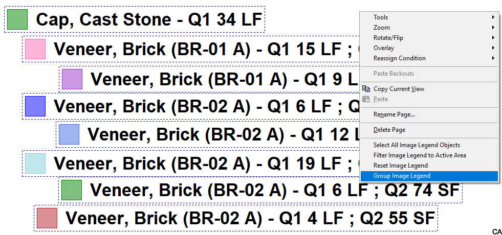 Is there a way to "Group" takeoffs on the legend just as in the side bar?