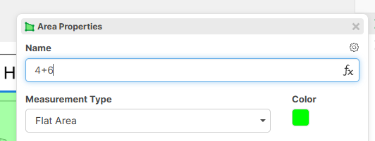 string() converts values into text (Also drops .0s at the end) -> string([Area:SF])