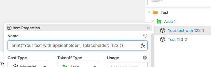 The print currently functions as following: print("Your text with $placeholder", {placeholder: value})