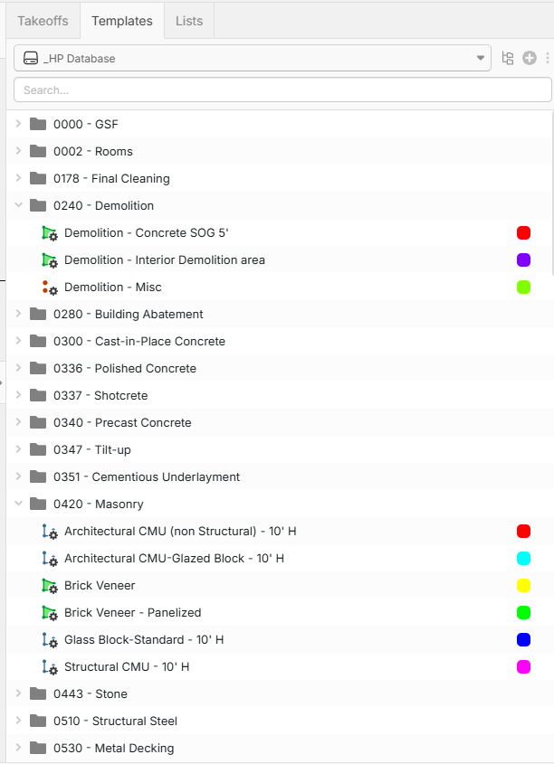 5. In the "Takeoffs" tab (not the "Templates" tab) I'll paste the Templates