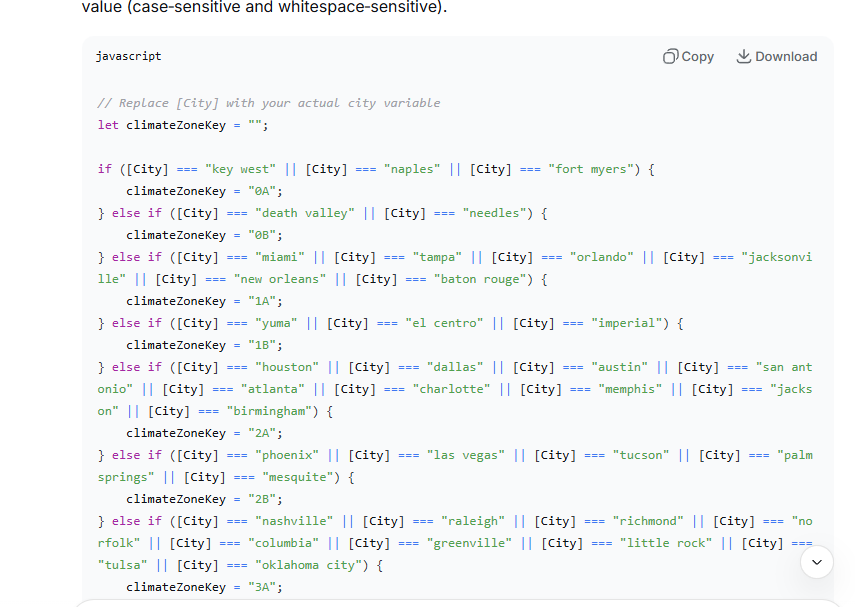 How to make an if: if the City name is the same, return the Climate zone. I also want to make a City Cost Index percentage to reference.