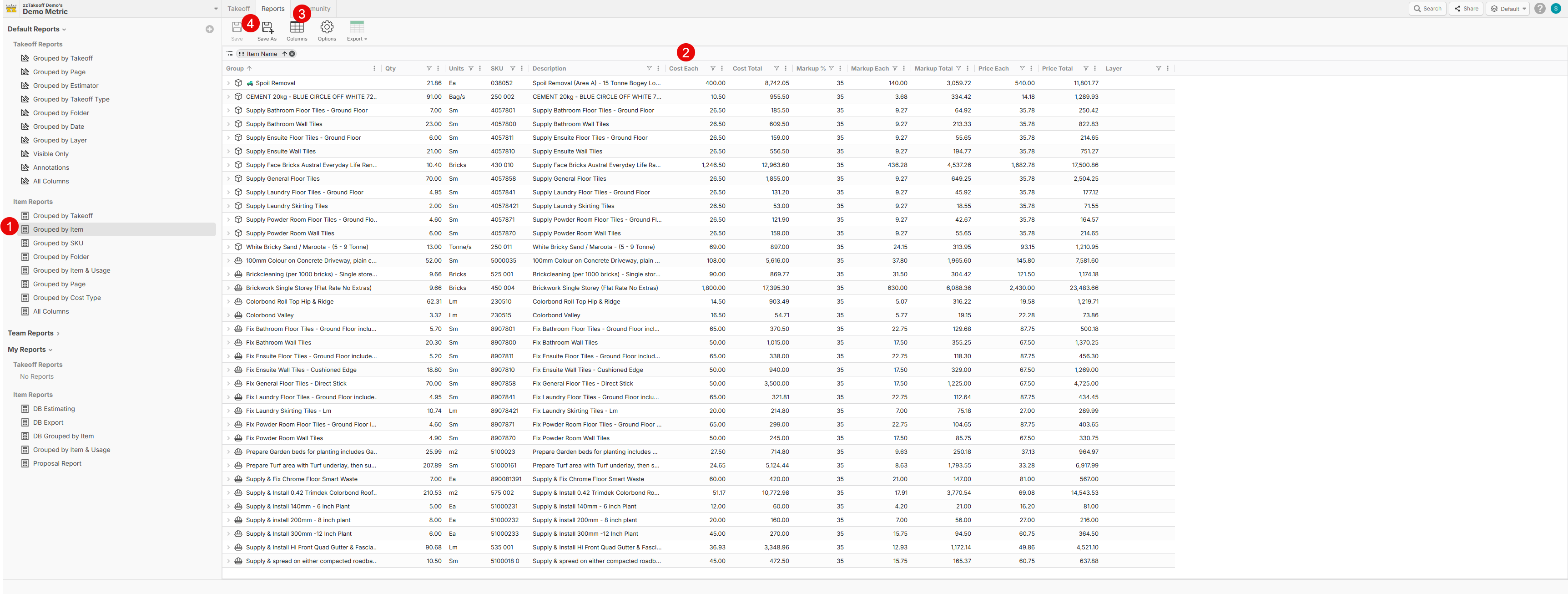 Assuming you have added items to your Takeoffs when you go to Reports you do the following