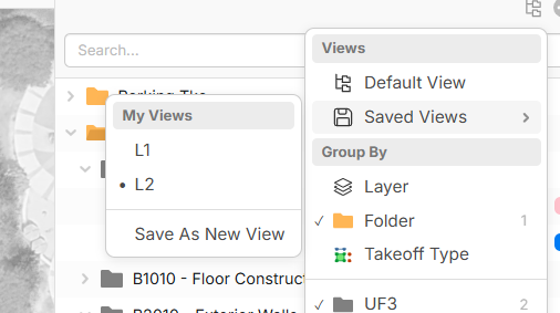 Wondering if there is a workflow to save views where I can turn on/off the takeoff items, then save it in that state? My use case is I'm going to print the one page that has many overlapping takeoffs, and figured I could save these views as I'm doing it too to access later. Here is my simple example, note we only have one page that consists of two levels. Looking back I could of duplicated the page for the level 2. I did give the saved views a whirl, but it didn't seem to do anything: