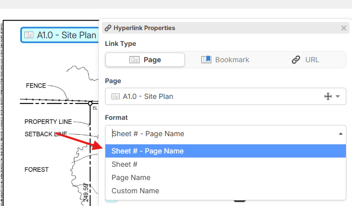You can now control the format of the hyperlink better, including the Sheet # on the label, or overwriting the label/name with custom text.