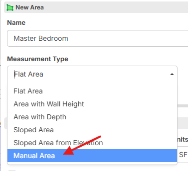 If you choose "Manual Area" or "Manual Linear", etc. you will then be prompted to manually enter in those values instead of having them be calculated from points on the page. Then if this manual takeoff has child items, they will use these values for the formula calculation.