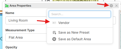 Then when you want to show the property on a specific Takeoff, Item, or Template, you can click the gear at the top of the properties popup, and click on the specific properties that you want to show.