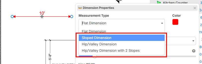 You can now slope dimension lines similar to a linear or segment takeoff: