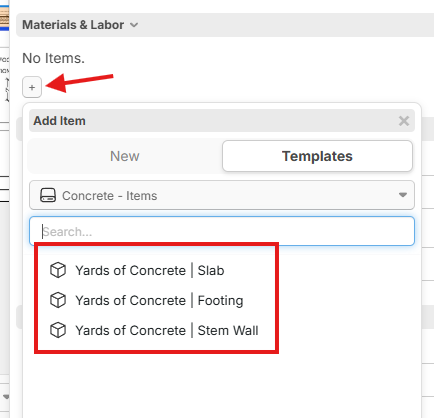 Materials & Labor - Add Items On the Fly