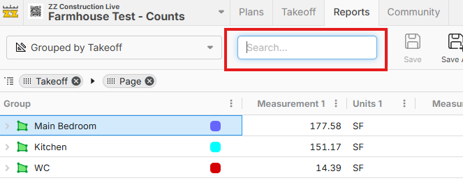 Across the bottom of the page while doing takeoff, with the same view as in reports. It's kind of like a report preview. You can customize the data sorting/grouping very specific to your needs while you perform takeoffs.