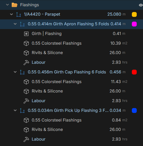Then in the detail drawings i measure the flashings etc and it all combines nicely